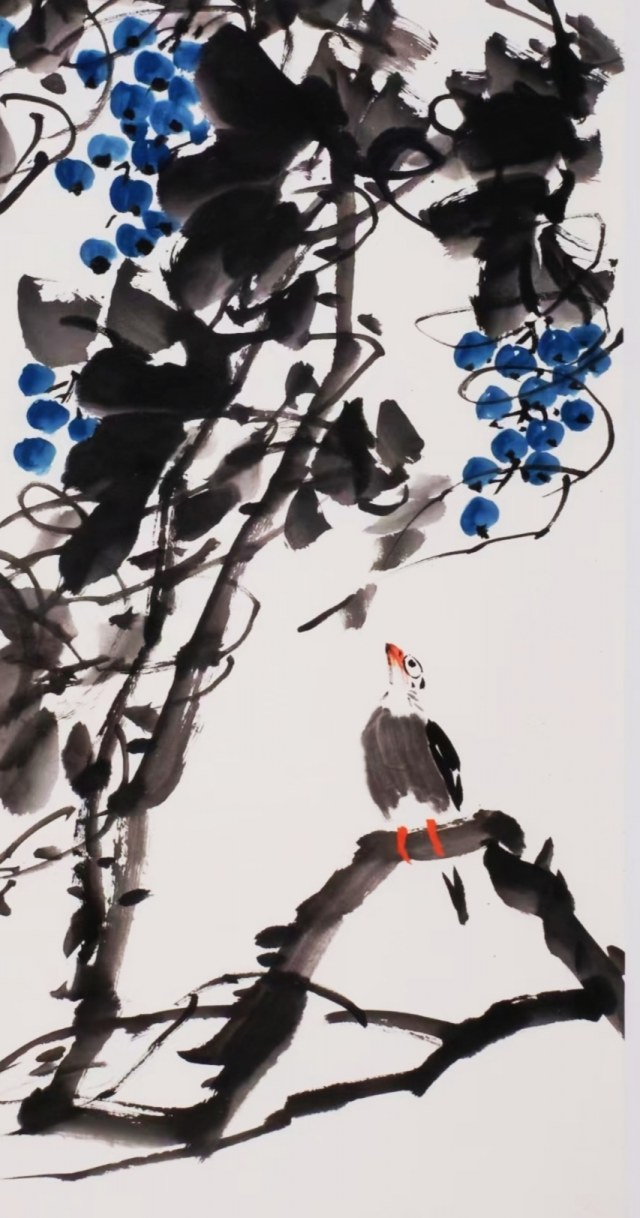 泉飞有丘 则需以遒劲笔线勾勒飞瀑,在留白处暗示世外桃源