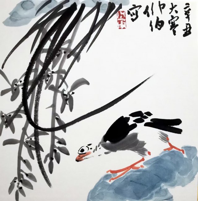 水黑见鱼乐 砚深藏蛰龙 日写三千字 不知春夏冬 指茧化山脉 纸堆成岳峰 停笔观云起 方知墨外踪 《临池》仰伯  图片说明(国画作者仰伯) 薛晓勇的这首五言诗,以书法修行为题,道出了中国艺术核心的“修行-顿悟”模式。它清晰地勾勒出一条从“沉潜于技”到“超然于道”的精神轨迹,是其艺术思想体系的重要支柱。 一、筑基:于“水黑砚深”中涵养内美 诗的开篇“水黑见鱼乐,砚深藏蛰龙”,便以非凡的意象奠定了修行的根基。 “水黑”与“鱼乐”:化用《庄子》濠梁之辩的典故,暗示书法的至高境界在于物我两忘、自在优游的精神愉悦。墨汁(水黑)不仅是书写的材料,更是滋养艺术生命(鱼乐)的源泉。 “砚深”与“蛰龙”:将砚台想象为潜藏神龙的深渊,这是对自身内在潜能与磅礴创造力的坚信。薛晓勇在此指出,真正的书法探索,并非向外求索奇技,而是向内深挖,唤醒蛰伏于灵魂深处的、如龙般雄强的生命能量与古典气魄。 二、苦行:以“指茧纸堆”重塑时空 “日写三千字,不知春夏冬”:描绘了心无旁骛、沉溺于书写的高度专注状态。这不仅是时间的投入,更是精神的闭关,以此斩断与外缘的纠缠,全身心浸入笔墨的世界。 “指茧化山脉,纸堆成岳峰”:将身体劳绩的痕迹(指茧)与精神追求的象征(山脉)等同,将物质性的消耗(纸堆)与艺术高度的积累(岳峰)类比。这是一种极具震撼力的表达:艺术家的身体,通过日复一日的劳作,本身已成为一座行走的、由功夫累积而成的山川。 这正是其画作中“金石味”最根本的来源——它不是风格的模仿,而是生命能量在纸上凝结后的自然质感。 三、顿悟:于“停笔观云”时得“墨外踪” 全诗的前六句极力渲染了“写”的绝对重要性后,尾联“停笔观云起,方知墨外踪”实现了一次决定性的转折与飞跃。 “停笔” 是关键性的动作。它意味着从主动的“作”转向被动的“观”,从“有为”的技术世界抽身,进入“无为”的自然境界。 “观云起” 是悟道的契机。云的形态千变万化,自在卷舒,无一笔人为刻画,却蕴含了宇宙间最生动的韵律与无穷的机趣。 “墨外踪” 是全诗的诗眼,是修行所指向的终极答案。它告诉我们,所有在“墨”之内的艰苦修行——对笔法、结体、章法的追求——其最终目的,是为了感知和捕捉那存在于“墨”之外的东西。那便是自然的生机、宇宙的呼吸、作品的气韵与超越形质的神采。 从“蛰龙”破壁到“云起”无踪 《临池》诗,完整阐述了薛晓勇的书法和绘画实践哲学: 1. 修养的内化:他将“蛰龙”般的传统能量,通过“日写三千”的苦行,内化为自身的“山脉”与“岳峰”,这便是其笔下线条充满“金石味”与磅礴生命力的根本原因。 2. 审美的超越:他追求的不是停留在纸面的完美字形,而是由笔墨生发、却远超于笔墨之外的“踪”。这“踪”是意趣,是境界,是弦外之音,是画外之象,与他画作中“空白非空乃画魂”的理念完全贯通。 因此,薛晓勇的书法探索,是一场“以技入道”的精神仪式。让我们看到,真正的书画家,既要是那位在“砚深”处默默蓄力的“蛰龙”,也必须是那位敢于“停笔”、在“云起”间捕获天机的觉者。他的艺术之所以厚重而又空灵,正是因为这“墨内”的万钧之力,始终追寻着那“墨外”的永恒踪迹。
