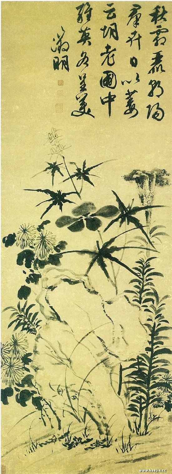 文征明 秋花图(北京故宫藏) 无论在书法史上还是绘画史上,文征明都堪称是一位举足轻重的巨匠。其山水、人物、花鸟无不精通,如此全面且成就高深,纵观历史恐唯有赵孟頫一人可比。特别是在“文人画”发展史上,文征明更是起到了承前启后的作用,是一位不可或缺的人物。 文征明(1470-1559年),初名壁,字征明,后以字行,改字徵仲,号衡山居士,长洲人。因曾任翰林院待诏,故人又称文待诏。斋号有停云馆、悟言室、玉兰堂等。明代“吴门画派”领军人物,与沈周并称“沈文”,与沈周、唐寅、仇英合称“吴门四家”、“明四家”。父文林中进士任地方官吏,文征明幼时略显迟钝,“八、九岁语犹不甚了了”,父不以为然,“儿幸晚成,无害也。”并为其请了最好的老师。文师吴宽,画习沈周,书学李应祯,此三人皆一代名流,文征明从师于他们,在诗文书画方面受到良好的教育。 但参加科举考试却屡试不中,从26岁起至53岁居然十考不中,最终凭推荐才入京授翰林院待诏,编修国史。因不满于官场的黑暗与闲职的无聊,三年后乞职南归故里,从此专心于书画,名声大起,四方持金求者纷至,然孤芳高洁,不肯为藩王、宦官、外国使节作画。晚年书画自娱,笔墨为生,明嘉靖三十八年(1559年)去世,终年90岁。 文征明的求仕之途可以说是非常坎坷的。出生于官宦之家的他,最初的理想是求取功名,但“十试有司,每试辄斥”,直至50多岁方以推荐身份谋得一翰林院待诏的闲职小官,实在是郁郁不得志。进入官场后看到宫廷纷争,官场险恶,遂萌生去意,故不满3年就借故辞职还家,此时他顿悟到多年所谋求的仕途之道并不是他的真正归宿。王世贞《文先生传》云:“先生归,杜门不复与世事,以翰墨自娱。”至此他抛弃一切杂念,书画成为他晚年的最大乐趣与追求。 文征明终其一生埋头致力于书画,至80多岁还能写一手工工整整的蝇头小楷,着实下了一番苦功。文征明的绘画成就极大,他不仅是“吴门画派”的旗手,一代宗师,门人众多,对明清两代的绘画也影响巨大,“文风”所及达400年之久。在书法上,他的“文体”行书既俊迈锐利而又不失洒脱秀丽,有凤舞琼花之姿,风靡天下。在书法史与画史上,文征明均占有重要的位置。 在绘画上文征明虽然山水、人物、花鸟无一不精,但历来公认与评价最高的当属山水。文征明19岁开始学画,26岁拜一代大家沈周为师,毫无疑问受沈周画风的影响甚大。但其山水画并不局限于沈周,而上溯宋元两代,从米芾、赵伯驹、王蒙诸家中汲取了很多养分。他的山水画同沈周一样在用笔及风貌上大体分“细笔”与“粗笔”两种,但沈周以雄健粗犷的粗笔著称,文征明则以细密典雅的细笔称胜,这一点他们又有很大的不同。目前,传世的文征明山水画有青绿山水、细笔本色画、粗笔山水、仿古山水等风格,反映出其转益多师、面目众多的特色。 细笔山水最能代表文征明自己的山水画面貌,是他的本色画。他虽然师从沈周,却并未受沈周雄强刚健、粗犷张扬的画风所笼罩,反而偏爱秀丽、细润、雅致一路的山水,这与他独特的审美有很大关系。文征明深受儒家传统文化与思想影响,主张绘画贵在“温厚平和”,刚柔有度,推崇精工、秀润、清丽、含蓄,在绘画上他有自己明确的取舍与追求。他喜爱沈周早期作品,认为用笔精工,不似晚年粗株大叶,草草而成,并多加效法。此外,赵孟頫绘画的古意,王蒙结构的繁密都被文征明融入到自己的山水画中,同时一改“元四家”重笔墨而轻设色的短处,格外注重色的运用,最终形成自己用笔精细、设色淡雅、构图缜密、意境清幽的山水画风格。 他的细笔山水代表作如《真赏斋图》(上海博物馆藏)、《惠山茶会图》(北京故宫藏)、《东园图》(北京故宫藏)、《影翠轩图》(台北故宫藏),用笔精致,色墨相得益彰,书卷气很浓,古意盎然。他的山水画大多描绘文人雅聚之景,将人物与山水有机结合起来,突出表现一种文人超然物外的境界与风骨,这是文征明山水画的一大特色。 文征明的粗笔山水画师法沈周,然苍劲浑厚之余而不失温润,粗而不怪,简而不率,笔墨没有干枯狂燥之弊,并运用许多书法的用笔来勾皴点染,表现力丰富,节奏感很强,抒写性甚浓。他的粗笔山水以水墨居多,也有设色。代表作有《石湖图》(苏州博物馆藏)、《游玄墓诗画图》(台北故宫藏)、《人日诗画图》(上海博物馆藏)、《春山烟树图》(台北故宫藏)、《桃源问津图》(辽宁博物馆藏)等。这些山水看似信笔而成,但细加端详又格外严谨,绝无流俗之笔,此为文征明粗笔山水画高超过人之处。此外,他还有一些介于粗细之间的山水,如《浒溪草堂图》(辽宁省博物馆藏)、《绿荫草堂图》(台北故宫藏)、《林榭煎茶图》(天津博物馆藏),工写结合,粗细兼顾,笔墨收放自如,将两种风格有机地融为一体。 在青绿山水上文征明也造诣颇深,极有建树。代表作有《飞岚叠图》(台北故宫藏)、《春深高树图》(上海博物馆藏)、《仿赵伯骕后赤壁赋图》(台北故宫藏)等。文征明的仿古山水虽数量不多,但从中不难看出他对历代名家多有涉猎,对传统下了一番苦功。代表作有北京故宫《仿米云山图》、天津博物馆《仿米云烟图》和藏于南京博物院的《古木苍烟图》。 文征明人物画真迹传世甚为罕见,目前已知的两件为《湘君湘夫人图》(北京故宫藏)和《老子像》(广东省博物馆藏)。他的人物画直