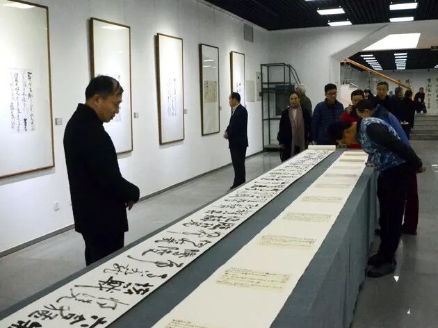 中国书协理事、山东书法院执行副院长、淄博市书协主席 赵长刚: 春雷是一个非常真的人,是很懂得有人情味的人,是一个非常善良的人,他的艺术能达到这样的高度,与他的人品是分不开的,艺术是写心的,书法就是一个人心灵的反映。春雷的技法比较深厚、广泛,决定了他今天的书法境界,春雷通过这几十年的读书学习,最后形成了他自己的风格。 今天来的都是春雷的同道、朋友,包括老师,今天这个活动非常成功,大家讲的都非常真切,不论是对春雷的为人,对他的艺术,都给了充分的肯定,这让我非常感动。 春雷热爱书法艺术,他调到文化单位,又担任张店书画院院长,从业余到专业,从展览获奖到院校深造,他明白书法没有文化的支撑,很难走的深入、高远,他很注重眼界的打开,文化的提升,他做了很多的文化储备。 再一个,从理性的临帖,到自然奔放的流露,我认为他在这个环节还没有完全的完成,他临了大量的帖,做了丰厚的储备,但他的突然去世,还有很多的想法没来得及去完成。今天的展览作品,将他的追求,他的精神展现给大家,已经是令人非常震惊了,作为在当前这个时代,能静下来,读点书,临临帖,沉下心来做一些深入的思考,是非常难的。大家对春雷艺术的解读,我也非常认同。通过春雷这一个点,可以看到整个的淄博书法,淄博在中国的书坛,不客气的说是一个重臣,淄博有一批优秀的书法家,有丰厚的文化底蕴滋养,有老前辈的榜样作用,还有淄博的书界现象在全国也很难得,因此我非常自信,我认为淄博的书法一定会有一个非常灿烂、非常辉煌的明天!最后感谢各位,感谢主办、承办单位的领导,感谢各位老师,谢谢大家! 展览现场