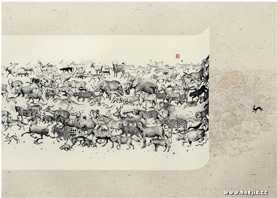 张亚磊 濒临灭绝 60×60cm 综合画种·漫画