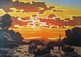 题 记:透过朵朵飘浮的云层太阳将天边染红,黄昏时分经过一天辛劳的耕牛悠闲的静卧在崖上,细细的反刍回味着草料。