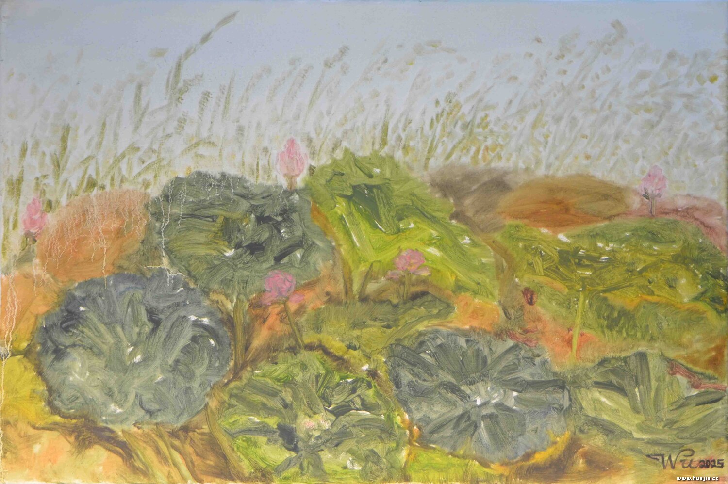 • 当微风轻轻吹过有水草的荷塘   (编号:0000612208)